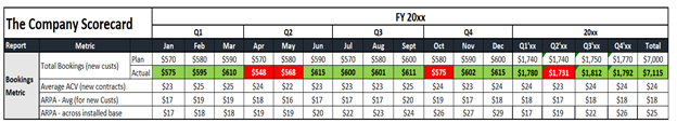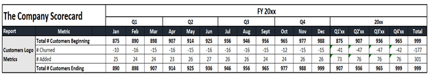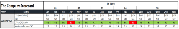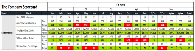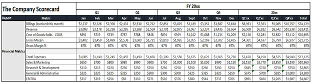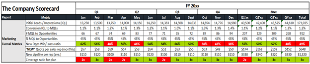 The earlier section looked at the overall financial aspects of the business, but your scorecard should track your high-level Marketing, Sales, and Customer Success metrics as well.