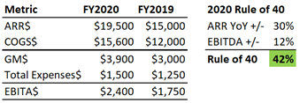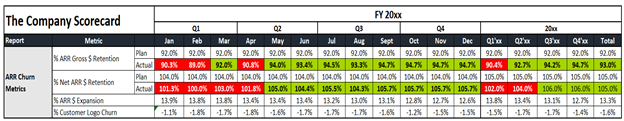 Special note: If you are generating $1m in MRR you should include “The Rule of 40” in your monthly metric reports. Below is an example of how you would show this in a scorecard.